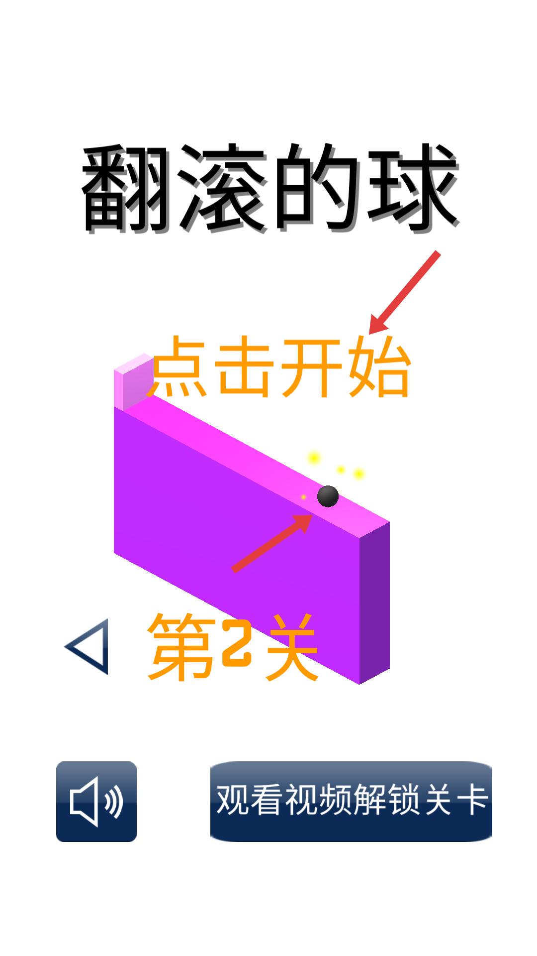 3、第一關通關后即可進入第二關界面,同樣有點擊開始提示,黑色小球在紫色平臺開始滾動,開啟第二關挑戰。