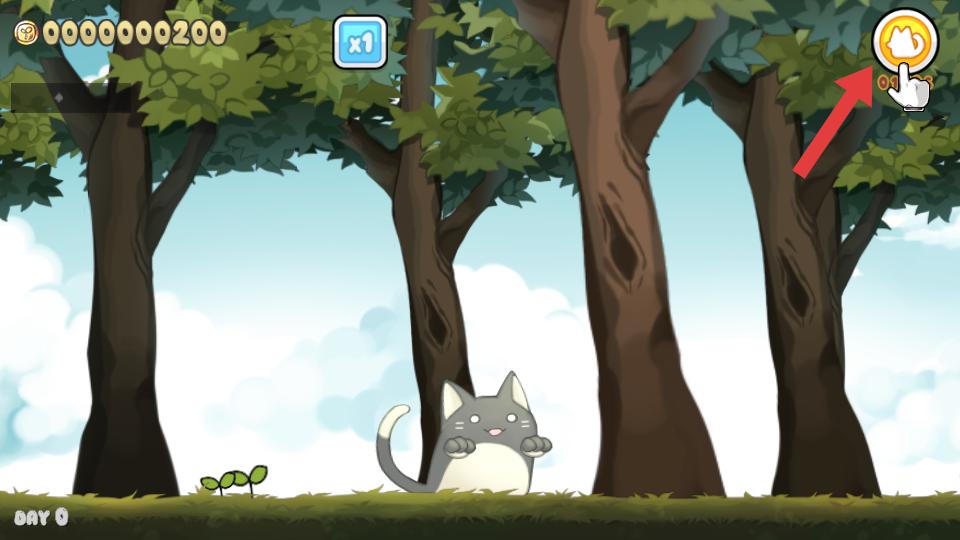 1、進入游戲,畫面有可愛貓咪,點擊右上角貓咪圖標,可查看相關功能,開啟貓咪的冒險之旅。
