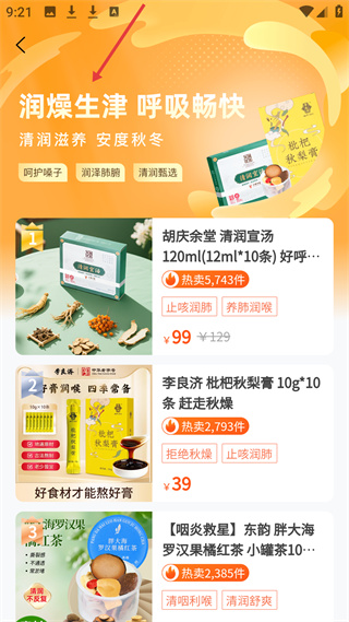 3、主打潤燥生津產品,有胡慶余堂清潤宣湯、李良濟枇杷秋梨膏等,針對嗓子肺腑,助力清潤滋養安度秋冬。
