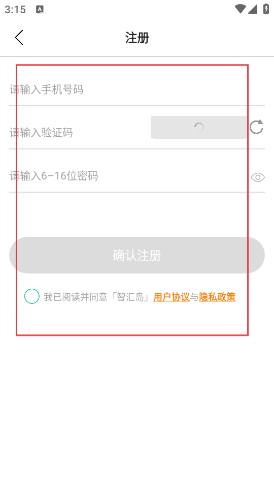 4、注冊時輸入手機號碼、驗證碼和6-16位密碼,勾選同意用戶協議與隱私政策,點擊確認注冊完成注冊流程。