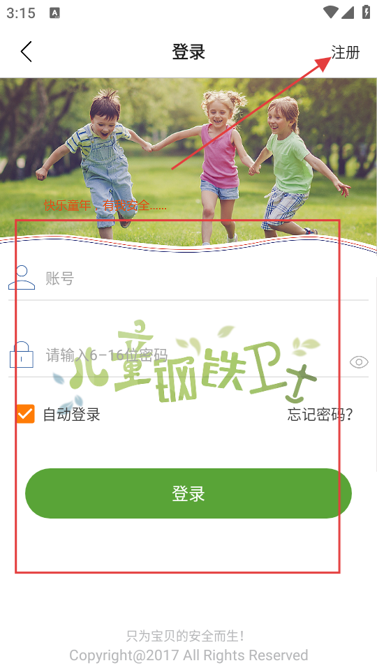 1、進入游戲前,可看到兒童鋼鐵衛士的主題界面,了解游戲是由智匯島推出,旨在保障兒童安全。