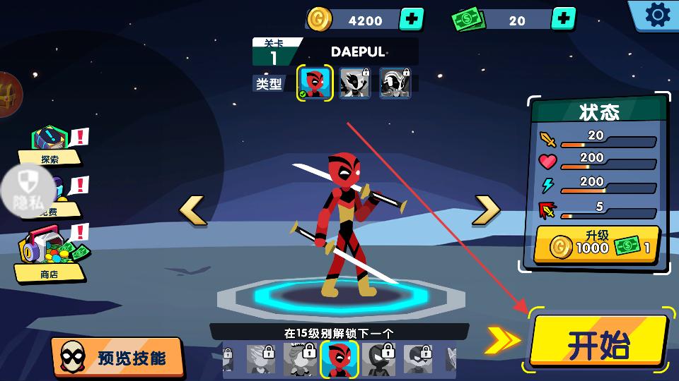2、在角色界面,查看DAEPUL角色的攻擊、生命等屬性,點擊右下角開始按鈕,跳轉至比賽信息界面,了解對手情報與獲勝獎勵。