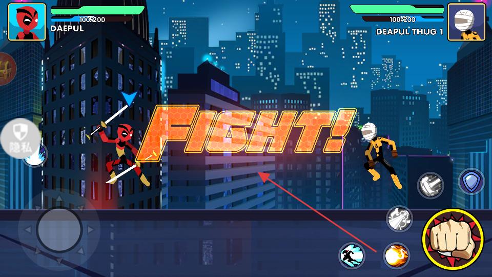 4、戰斗界面底部有虛擬搖桿和技能按鈕拳頭、閃避等,操控搖桿移動角色,點擊技能圖標釋放招式,攻擊對手同時躲避傷害,依據戰況靈活切換技能,爭取戰勝敵人。