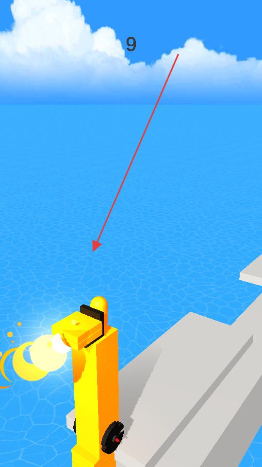 1、進入愚蠢的車輪競賽游戲,操控小車在水上賽道起步,觀察上方數字變化,沿賽道行駛,避開落水風險。