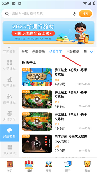 2、繪畫手工類有手工黏土、沙畫等課程,分不同難度等級,以實踐內容為主,可提升用戶的動手與創作能力。