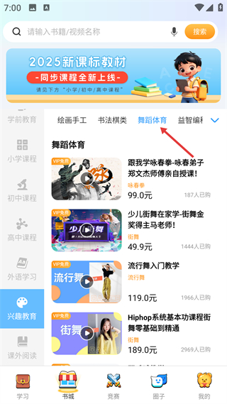 4、舞蹈體育類包含詠春拳、街舞等課程,覆蓋武術與舞蹈類型,可助力用戶提升運動技能與形體表現力。