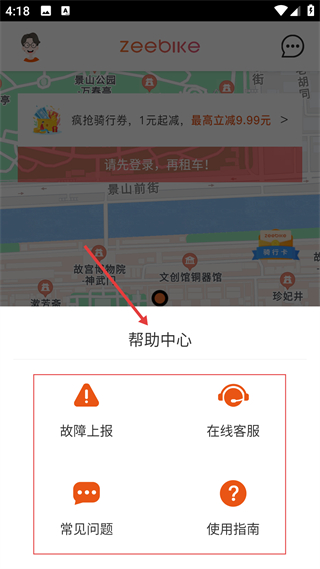 1、幫助中心提供故障上報在線客服等入口,涵蓋常見問題與使用指南,是解決騎行相關問題的集中服務板塊。