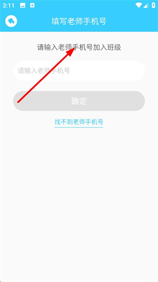 4、注冊登錄后會進入填寫老師手機號界面,輸入老師手機號并點擊確定,即可加入對應的班級,參與班級相關的學習內容。