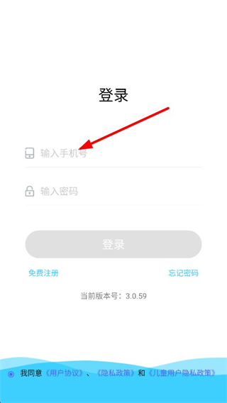 1、進入應用先到登錄界面,需依次填寫手機號和密碼,勾選同意相關協議后點擊登錄按鈕,即可進入應用開始使用。