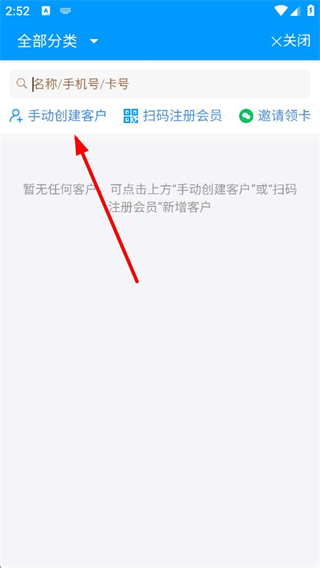 3、客戶選擇環節,可進入全部分類界面,通過手動創建客戶掃碼注冊會員等方式新增客戶,便于后續的會員管理及消費記錄跟蹤。