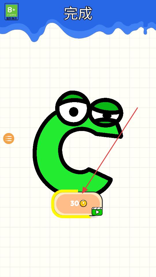 4、完成字母C的全部涂色后,彈出帶有金幣獎勵的提示框,領取30個金幣,完成第一關的涂色闖關,準備進入下一關繼續涂色挑戰。
