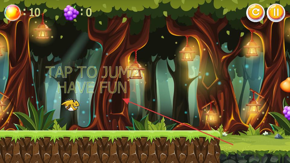 1、點擊游戲啟動按鈕進入森林場景,操控小動物,此時界面顯示時間和收集物計數,準備通過點擊讓小動物跳躍,開啟森林冒險之旅。