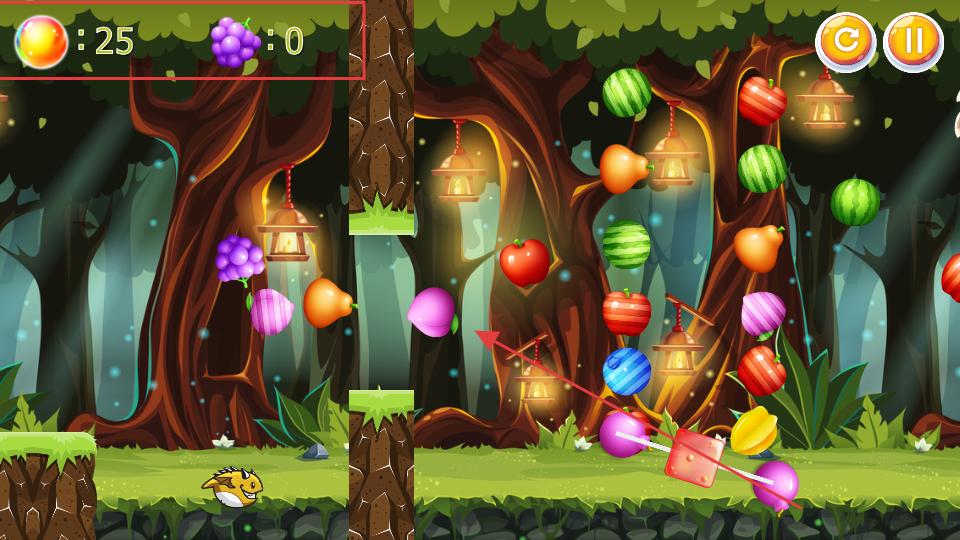3、繼續操控小動物跳躍,穿越帶有樹木障礙的區域,收集更多種類的水果,像蘋果、西瓜等,過程中注意避開危險,保持小動物安全移動。
