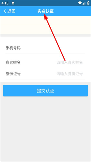 4、進入實名認證界面后,需補充填寫真實姓名身份證號等信息,待信息填寫完整后,點擊提交認證按鈕即可完成身份認證操作。