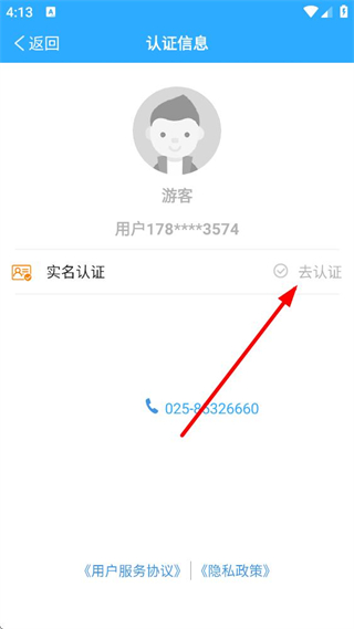 3、登錄后進入認證信息界面,能看到當前用戶標識,界面設有實名認證選項并附帶去認證按鈕,點擊該按鈕可開啟身份認證流程。