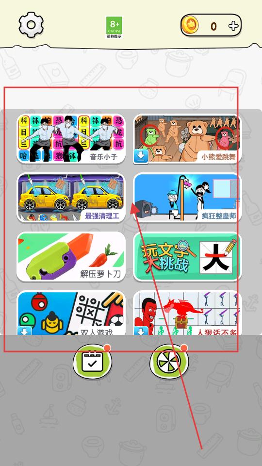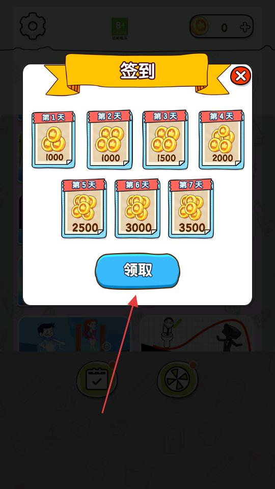 3、領取簽到金幣后,正式進入郎給的誘惑關卡,看到界面中的角色與箭頭指引,開始操控元素完成關卡內的互動任務。