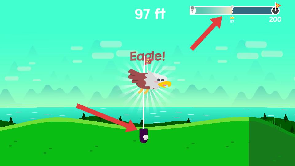 3、擊球后關注球的落點,若表現出色,會出現Eagle等評價,同時進度條也會有相應變化,推進關卡進程。