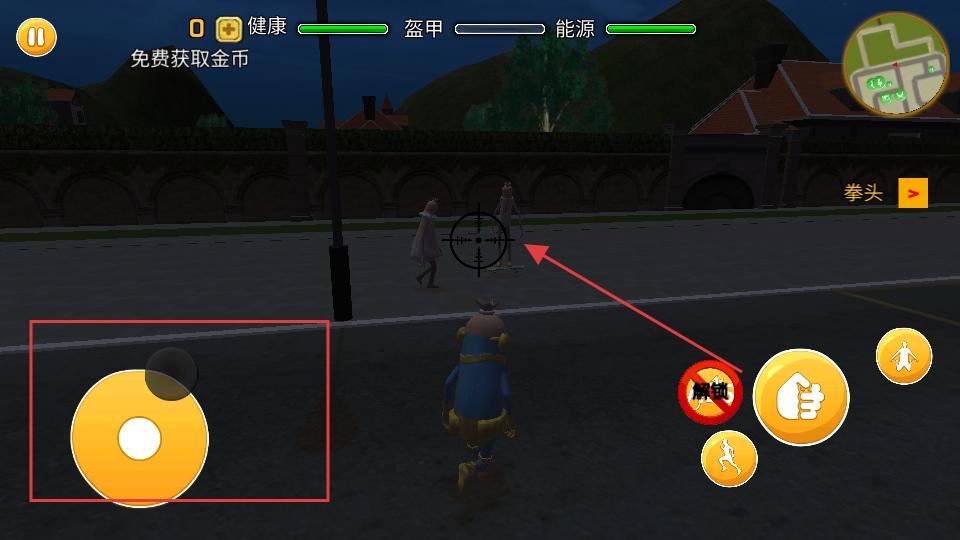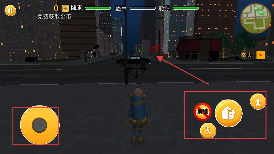 2、在游戲場景中利用左側方向按鈕控制角色移動,右側按鈕控制角色的攻擊、跳躍等動作,朝著目標方向前進。