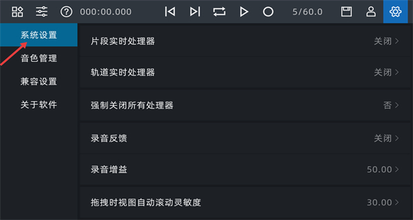 2、系統設置模塊涵蓋處理器開關錄音增益等配置項,能調整軟件運行與操作參數,適配不同設備及個性化使用習慣。