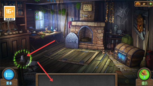 1、在木屋場景可收集如白色物品等道具,收集這些道具后可用于后續的解謎操作,推進游戲進程。