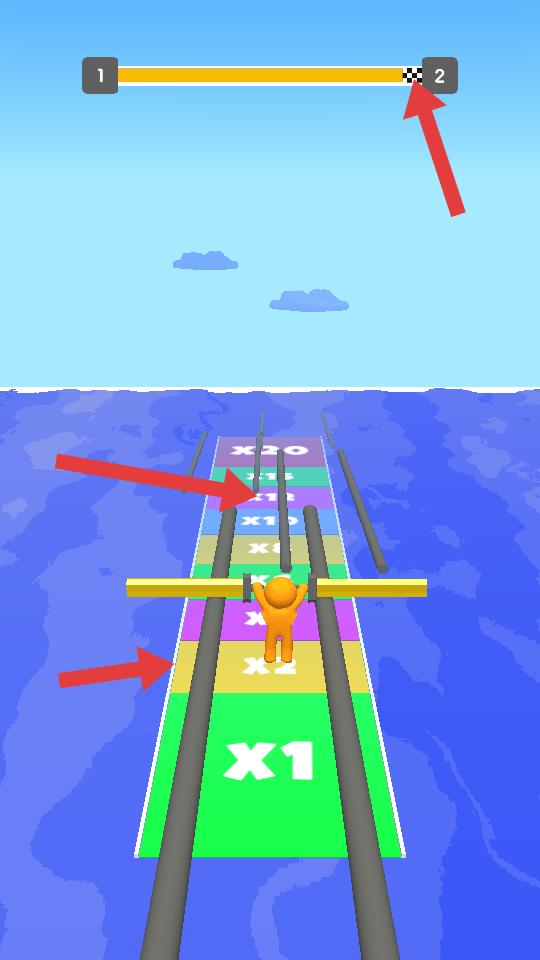 3、跑道上還有帶有不同倍數標識的區域,操控小人經過這些區域,能獲得相應倍數的增益,助力向終點前進。