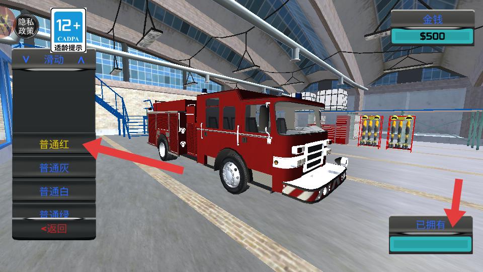 4、還能為消防車選擇顏色,如普通紅等,玩家選好后,駕駛消防車去執行滅火等消防任務。