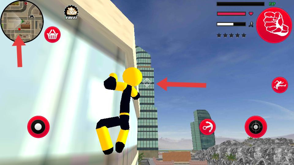 3、游戲中可借助左側小地圖查看位置,操控蜘蛛火柴人在高樓間攀爬,利用其攀爬能力探索城市建筑。