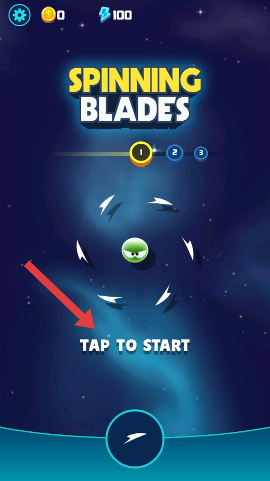 1、游戲開始前,界面顯示金幣0,閃電100,有SPINNING BLADES字樣,點擊TAP TO START,即可開啟游戲。