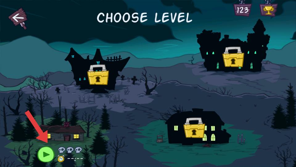 2、在關卡選擇界面,能看到多個帶鎖的建筑,找到解鎖的建筑,點擊綠色開始按鈕,即可進入對應的關卡進行挑戰。