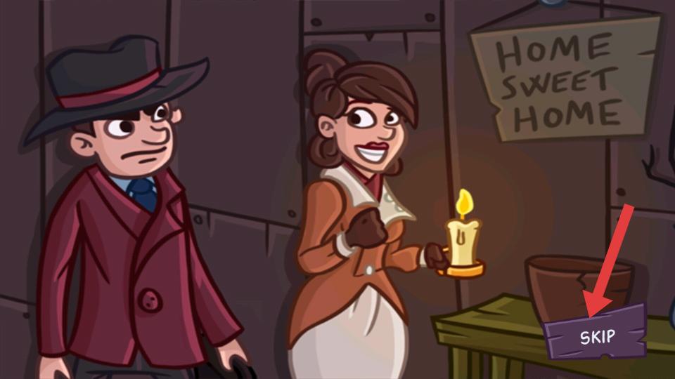 3、進入關卡后,會看到人物互動場景,若不想看劇情,可點擊SKIP按鈕,直接跳過劇情,進入解謎環節。