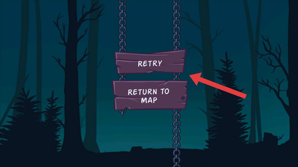 4、要是解謎失敗,會出現帶有RETRY和RETURN TO MAP字樣的選擇界面,選擇RETRY可重新挑戰當前關卡,選擇RETURN TO MAP則回到關卡選擇界面。