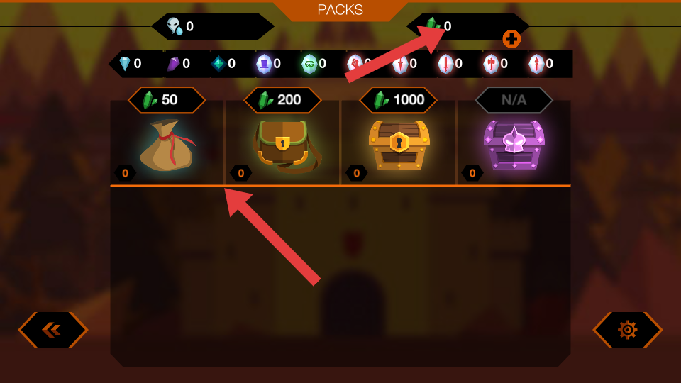 2、點擊PACKS進入道具包界面,使用綠寶石可以購買不同檔次的道具包,像50綠寶石的袋子等,獲取各類道具和資源來助力游戲進程。