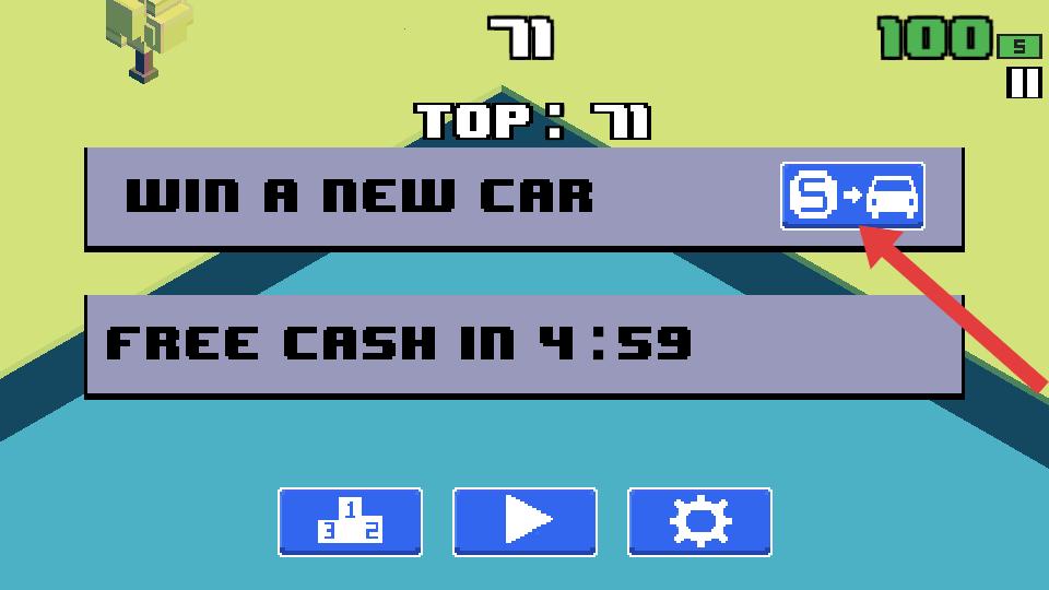 3、游戲過程中,會顯示分數等信息,若想獲取新車,可點擊WIN A NEW CAR對應的按鈕,還有機會在指定時間后獲得FREE CASH。