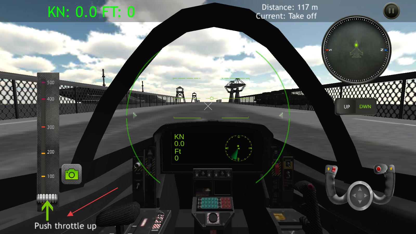 3、進入駕駛艙視角后,依據界面左下角提示,把節流閥向上推動,推動時關注儀表盤上速度、高度等數據變化,完成起飛前關鍵操作,為戰機起飛做準備。