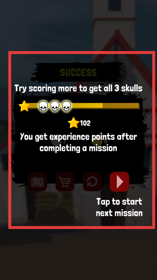 4、任務完成后,會顯示SUCCESS,還有經驗值獎勵,可嘗試獲得更多分數來集齊3個骷髏,之后點擊相關按鈕能開啟下一個任務,繼續挑戰。