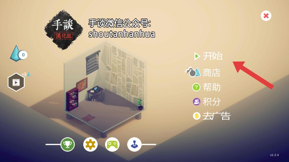 1、進入游戲會看到帶有手談漢化組等字樣的界面,有開始,商店等選項,點擊開始,就能進入關卡選擇界面,準備開啟逃脫挑戰。