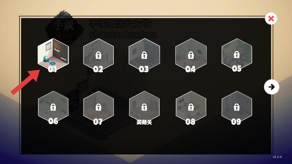 3、進入關卡選擇界面,能看到多個關卡,初始可選擇01關卡進入,其他關卡需解鎖后才能挑戰,選好關卡就可開始游戲。