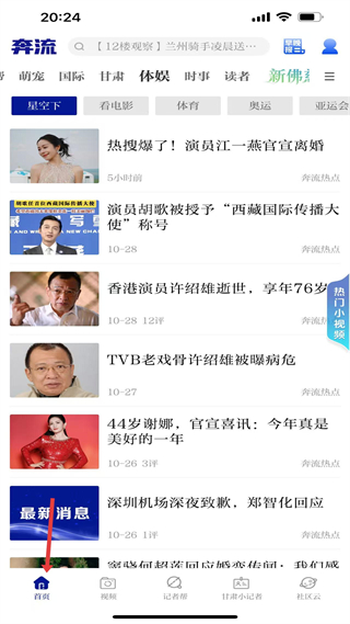 1、首頁板塊,有萌寵、國際等頻道,展示江一燕離婚、胡歌獲西藏國際傳播大使等體娛資訊,設星空下、看電影等分類,支持新聞內容搜索。