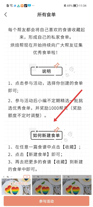 2、在所有食單頁面可了解如何新建食單,參與食單征集活動,還能查看食單說明和參與活動的步驟。