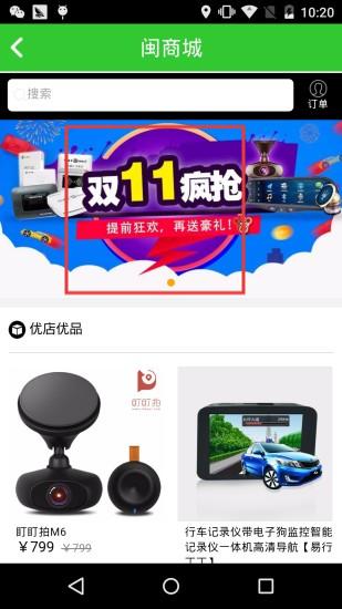 1、閩商城首頁,雙11活動banner醒目,展示盯盯拍等車品,促進購物。