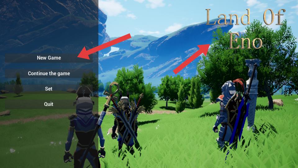 1、進入游戲主界面,點擊【New Game】選項,開啟Land Of Eno的冒險之旅,也可選擇繼續游戲等。