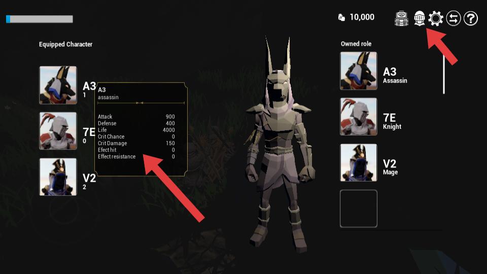2、在角色界面,查看已裝備角色的屬性,點擊對應按鈕,詳細了解角色詳細信息,為冒險做準備。