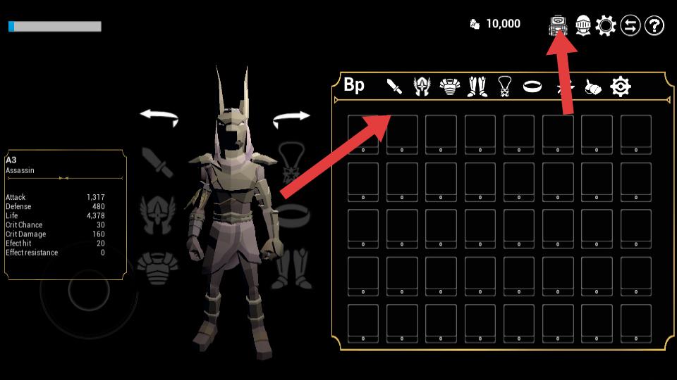 3、切換到裝備界面,可查看到裝備欄,點擊對應裝備分類,可進行裝備穿戴等操作,強化角色。