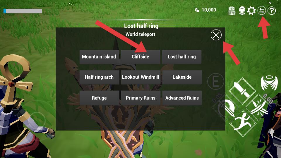 4、玩家在世界傳送界面,選擇【Cliffside】等傳送點,點擊對應按鈕,前往不同場景,探索游戲世界。