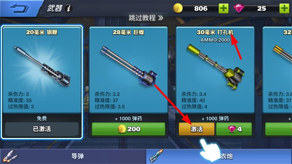 1、激活30毫米打孔機等加農炮武器,提升戰機的火力輸出,增強對敵方目標的打擊能力,優化武器配置。