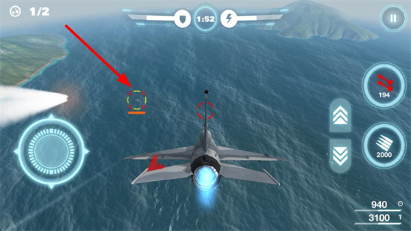 3、操控戰機躲避敵方導彈攻擊,提升戰機的生存能力,在戰斗過程保持優勢,順利完成任務。