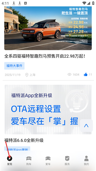 1、福特智趣烈馬預售,全系四驅,預售價22.98萬起,同時呈現福特派App升級,底部有發現等功能入口。