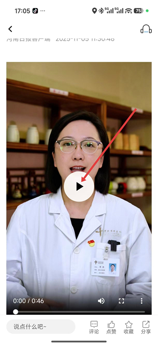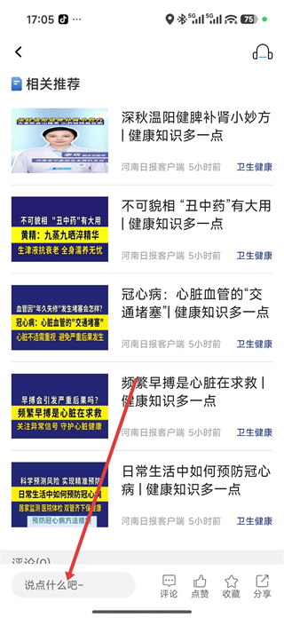 3、在視頻下方的評論區點擊說點什么吧可輸入評論內容,參與資訊互動,分享自己的養生心得。