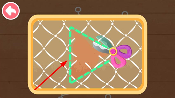 1、使用剪刀工具,沿著綠色標記的輪廓裁剪材料,完成對應的裁剪操作,為后續制作捕魚工具做準備。