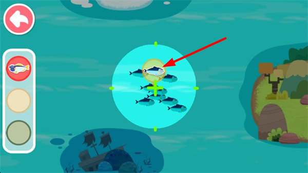 3、之后找到水域里的魚群,瞄準目標魚的位置,準備使用制作好的工具進行捕撈,聚焦魚群區域推進捕魚流程。